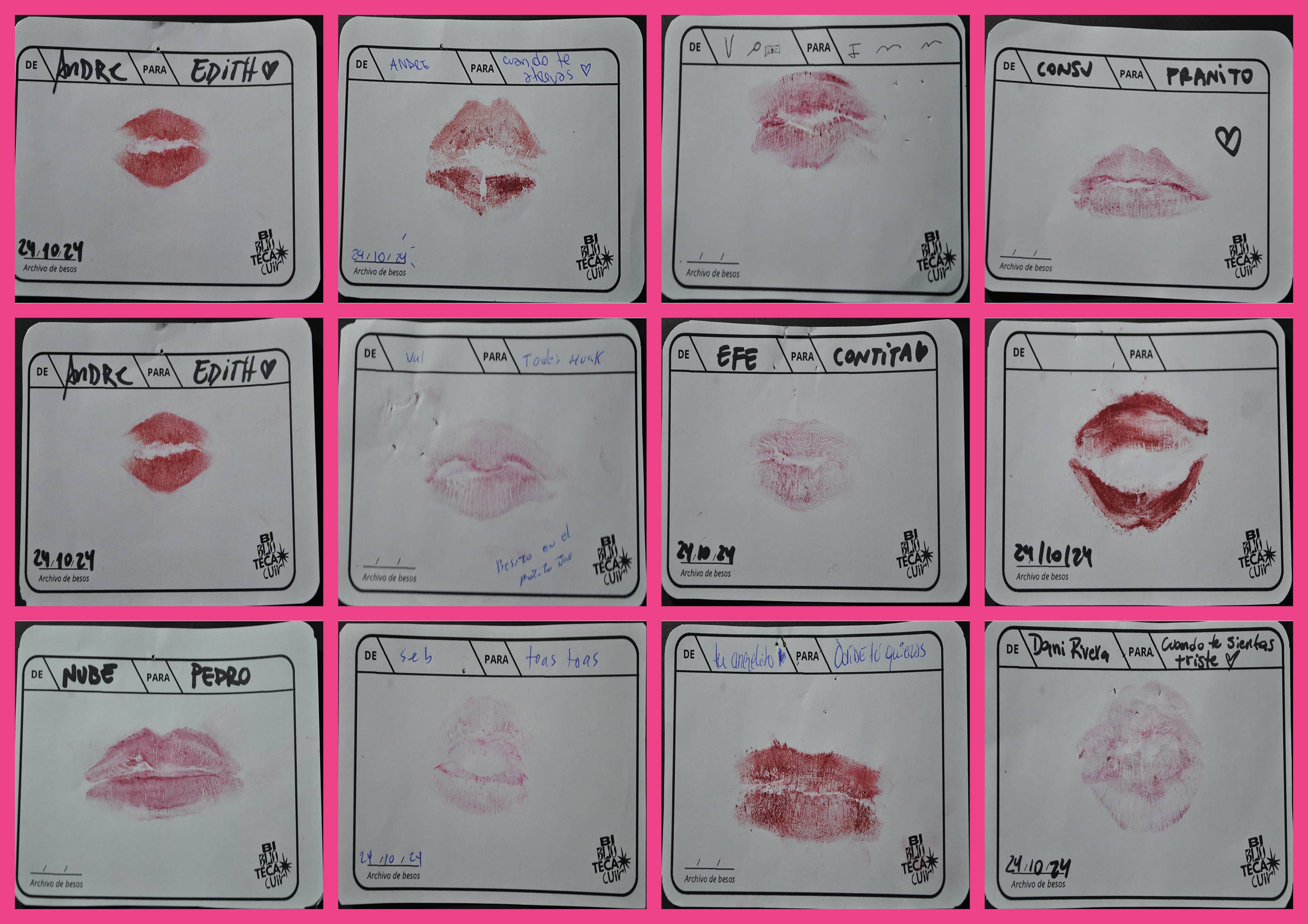 En la misma línea de explorar metodologías que amplíen los modos de producción colectiva, surgen iniciativas como el Archivo de besos (figura 20), un ejercicio que se ha activado en instancias públicas, como los convites, y que aborda el afecto y el deseo.