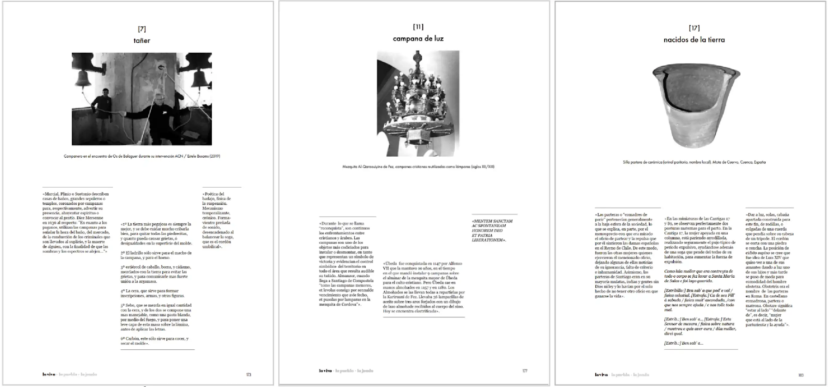 Figura 10: Ítems [7] tañer, [11] campana de luz y [17] nacidos de la tierra. Un archivo albaicinero. Operaciones Cunctatio, 2023.