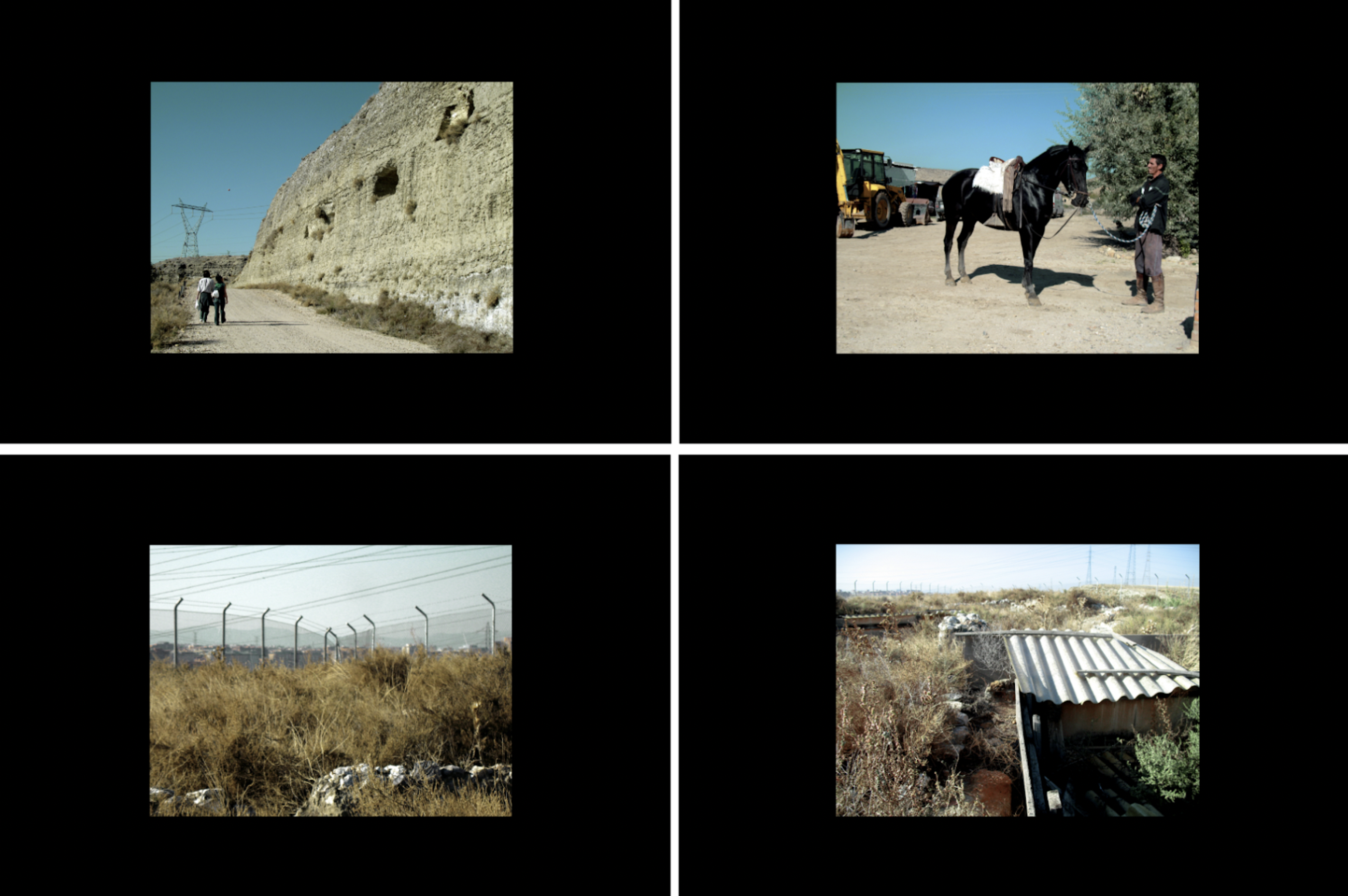 En aquel proyecto ensayamos por primera vez distintas exploraciones «extra-vagantes» por los límites de Mercamadrid, el corazón logístico que mantiene vivos a los habitantes humanos de la ciudad; a las escombreras y campamentos de toxicómanos de la Rosilla; a los cerros llenos de cardo mariano y atravesados por infraestructuras de alta velocidad, sorteables solo a través de túneles que van a dar a guaridas de pastores; encontrando chozas abandonadas en las proximidades de la Cañada Real y Valdemingómez –donde aún se producían desalojos de viviendas–; hasta llegar, junto al río, a la trinchera sur de la resistencia republicana en Madrid y más allá, en el límite, al Cerro de la Gavia donde se arraigaron las primeras tribus de arcaicos madrileños6.